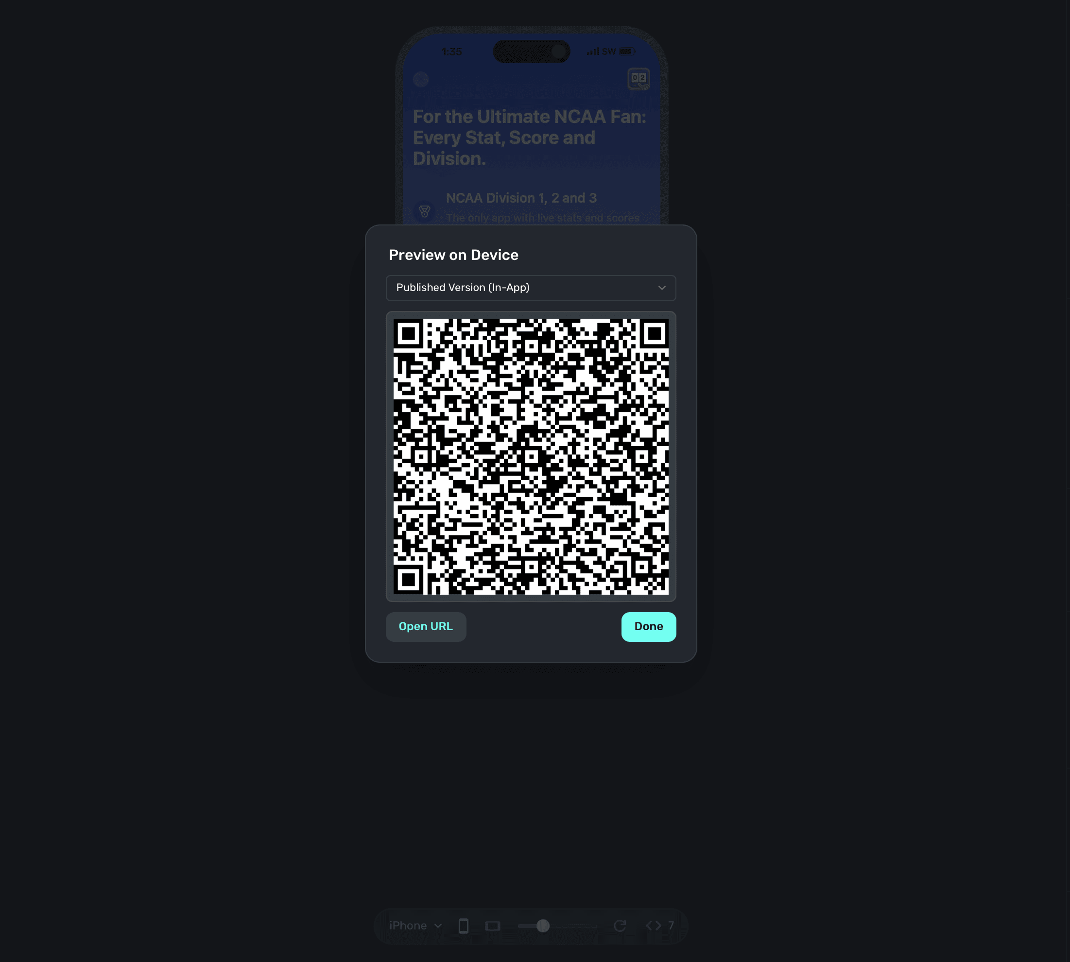 On your device, scan this QR code. You can do this via Apple's Camera app. This will take you to a paywall viewer within your app, where you can preview all your paywalls in different configurations.