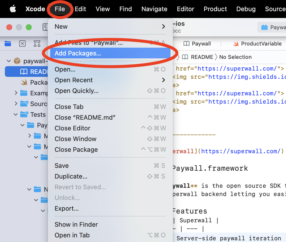 For further help, check out our iOS example apps for working examples of implementing the Superwall SDK.
