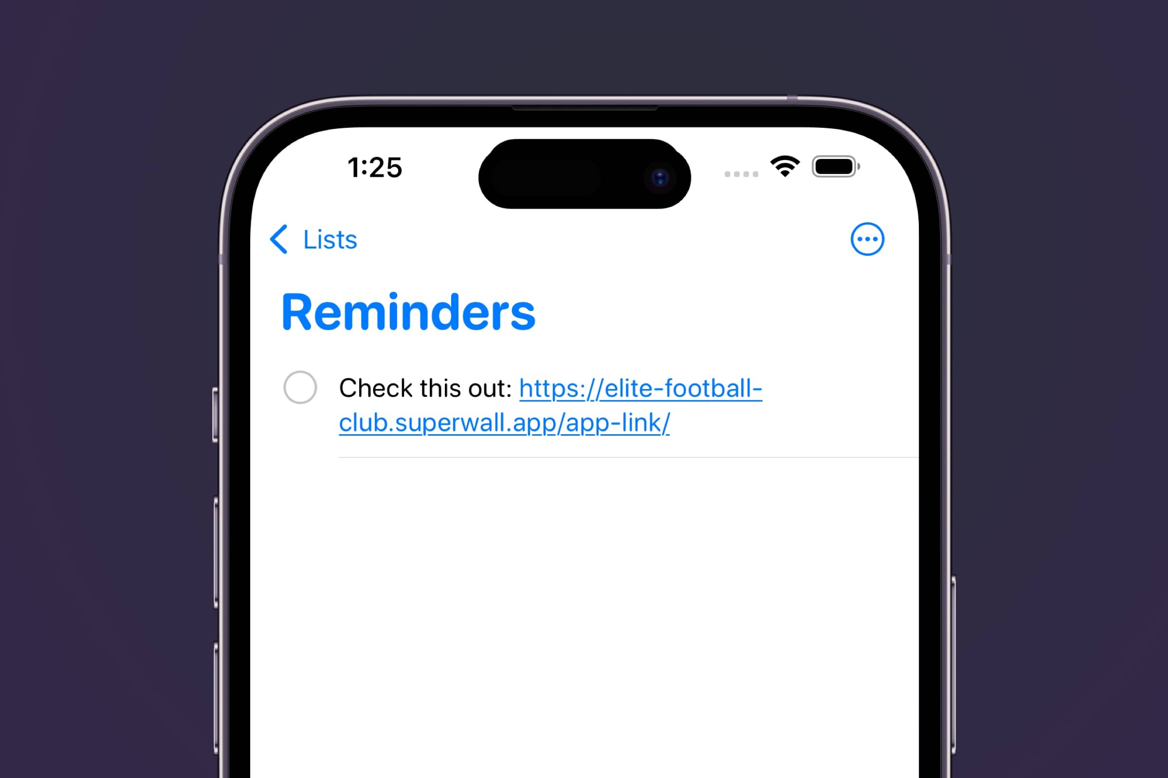 2. Test opening a universal link: If the validation passes from either of the two steps above, make sure visiting a universal link opens your app. Your link should be formatted as https://[your web checkout link]/app-link/ — which is simply your web checkout link with /app-link/ at the end. This is easiest to test on device, since you have to tap an actual link instead of visiting one directly in Safari or another browser. In the iOS simulator, adding the link in the Reminders app works too:
