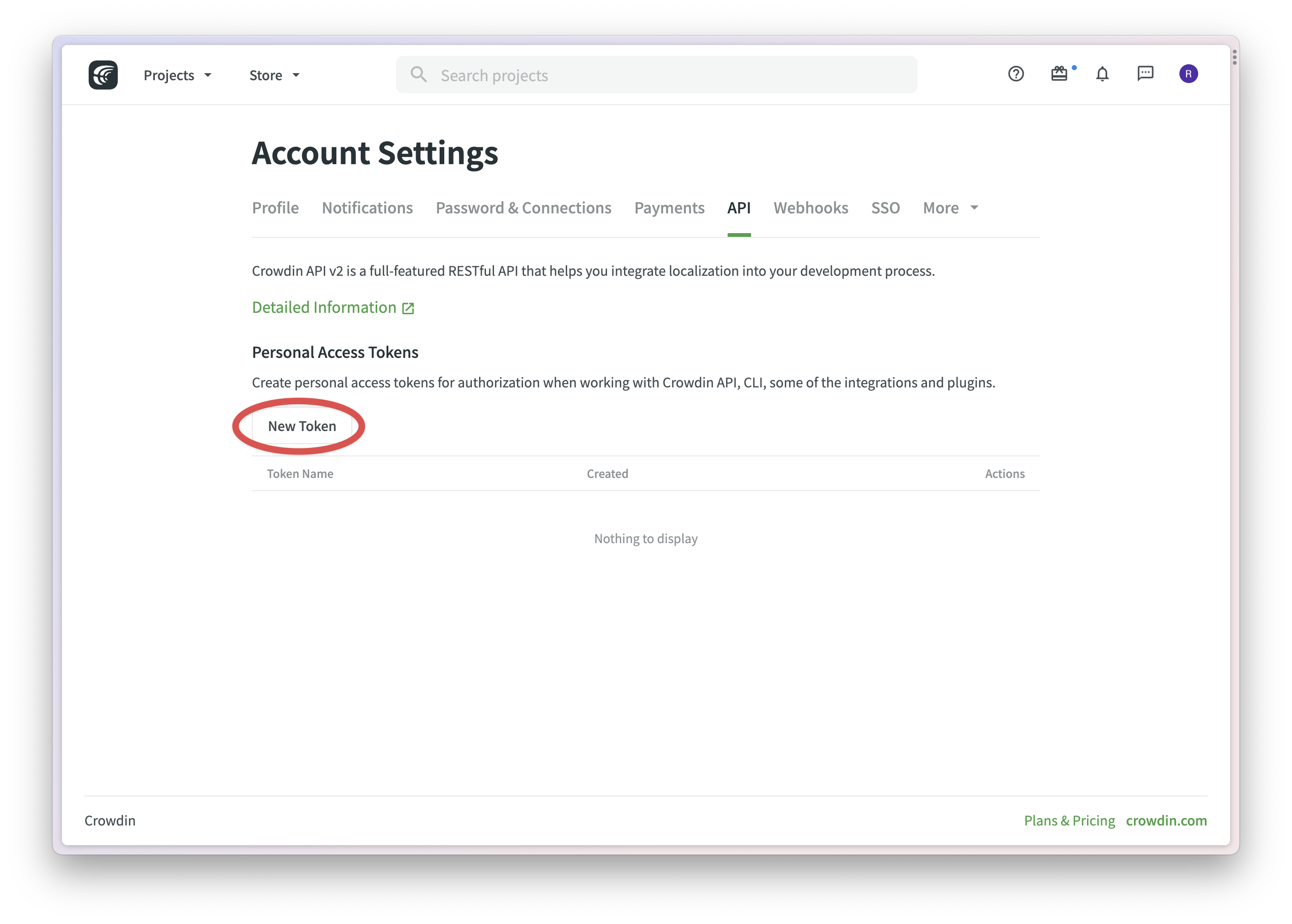 To set up Crowdin, you'll need to generate an API key.